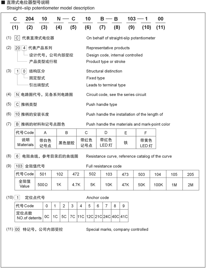 直滑电位器型号命名规格