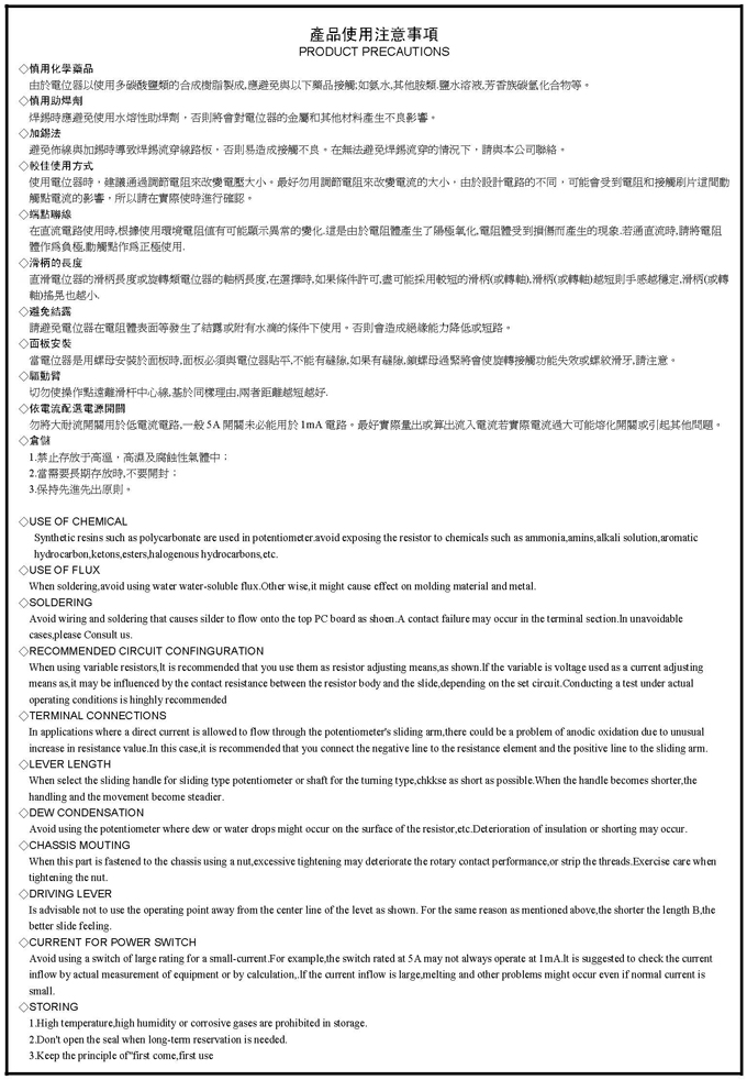 电位器注意使用事项